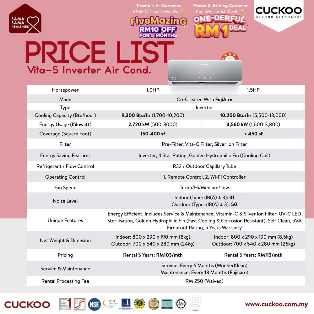 PROMOSI AIRCOND VITA-S RM103.00/SEBULAN